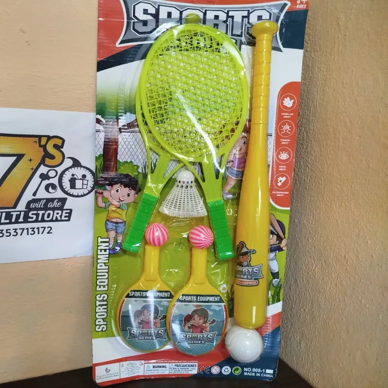 .🏸⚽⚾ Set deportivo (raqueta, gallo, pelota y bate)