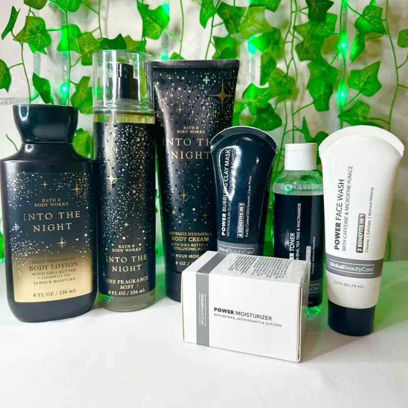 Juego de Loci贸n, Crema y Colonia in to the nigth 馃枻 + Juego de skincare Power( limpiador, t贸nico , mascarilla y crema )