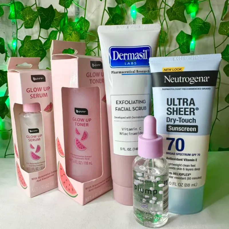 Tónico+Serum Glow up + Crema Dermasil + Protector solar neutrogena + Serum colágeno