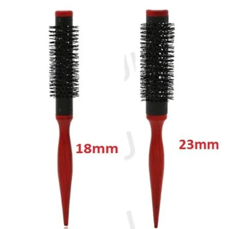 Cepillo redondo de cerdas de jabalí, cabo de madera y cilindro de metal cerámico.