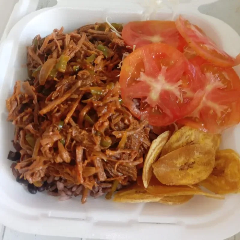 Ropa Vieja 110g,congrís 380g,ensalada mixta,chicharrita.