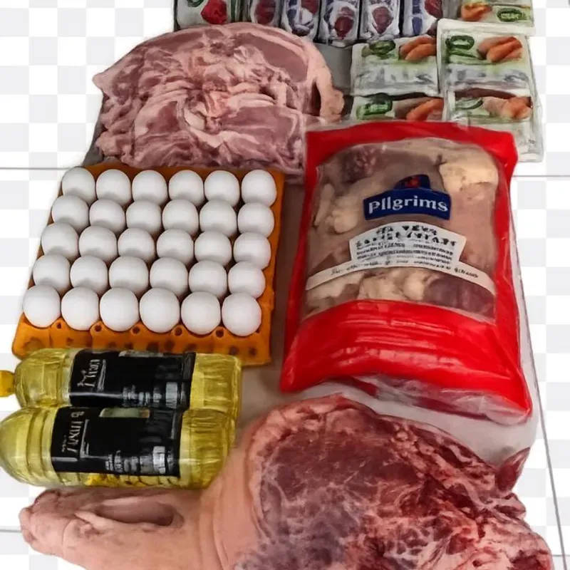 1 pernil de cerdo 1 file de huevo 2 pomos de aceite 1 paquete de pollo de 10 lbs 5 salchichas de 5 picadillos 2 latas de puré de tomate