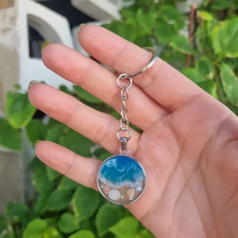 Llavero con dije de mar (elaborado con resina, arena y conchas naturales)