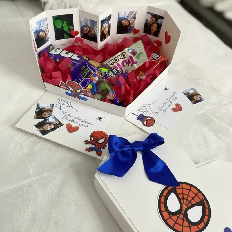 Caja en forma de corazon con temática de spiderman