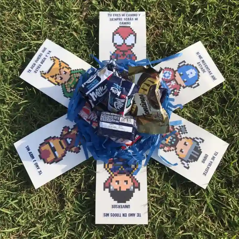 Caja sorpresa con temática Marvel y confituras -La temática se puede cambiar segun el gusto del cliente