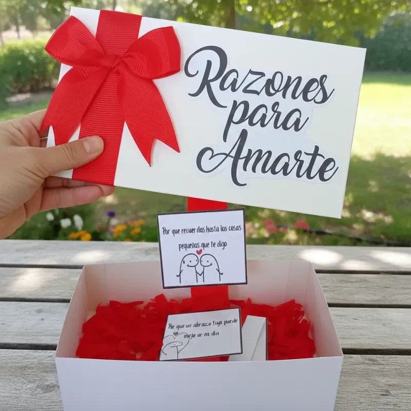 Caja mediana , con 6 razones o frases colgantes El color del lazo puede ser cambiado