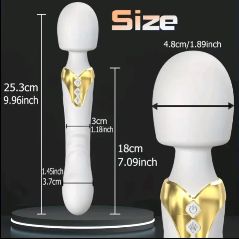 Varita de 25.3cm con dildo de 18 cm de cabeza vibratoria. Tiene 10 frecuencias de vibraci贸n, funciona como dos en uno ofreciendo estimulaci贸n por ambos lados. Beneficios del uso de vibradores tipo "wand" o varita m谩gica 1. Estimulaci贸n intensa y eficaz Potencia vibratoria alta: Este tipo de juguete est谩 dise帽ado para ofrecer vibraciones fuertes, ideales para estimular el cl铆toris, pezones, perineo o cualquier zona er贸gena externa. 2. Mejora la salud sexual Aumento de la libido: El uso regular puede aumentar el deseo sexual al mejorar la conexi贸n con el propio cuerpo. Exploraci贸n del placer: Ayuda a conocer mejor qu茅 zonas y tipos de estimulaci贸n producen mayor placer. 3. Fortalece el suelo p茅lvico Las vibraciones intensas pueden estimular los m煤sculos del suelo p茅lvico, lo que ayuda a mantenerlos activos y tonificados, previniendo problemas como la incontinencia urinaria. 4. Alivio de la tensi贸n muscular Muchas personas usan este tipo de vibradores tambi茅n como masajeadores musculares en hombros, cuello o espalda. Las vibraciones profundas ayudan a relajar los m煤sculos tensos. 5. Mejora del estado de 谩nimo y el sue帽o Durante la estimulaci贸n y el orgasmo, el cuerpo libera endorfinas y oxitocina, hormonas que reducen el estr茅s, mejoran el estado de 谩nimo y pueden ayudarte a dormir mejor. 6. Beneficios en pareja Puede ser un excelente complemento durante las relaciones sexuales, aportando variedad, intensificando el placer o facilitando el orgasmo, especialmente en mujeres. Favorece la comunicaci贸n sexual al explorar juntos nuevas sensaciones. 7. Salud sexual sin riesgos Cuando se utiliza correctamente, es una manera segura de experimentar placer sin riesgos de infecciones o enfermedades de transmisi贸n sexual.