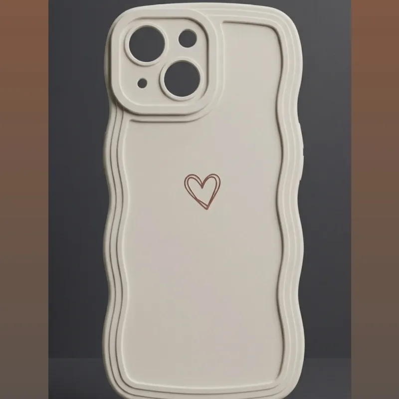 Cover de goma antichoque en color blanco con diseño de corazón dorado en el centro y protección alrededor de las cámaras