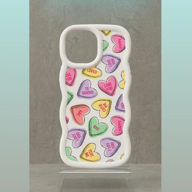 Cover de goma blanco antichoque con diseño de corazones de la fortuna