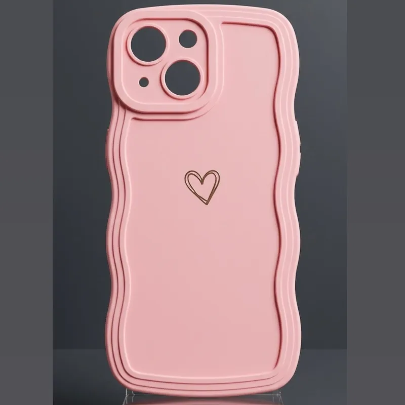 Cover de goma antichoque en color baby pink con diseño de corazón dorado en el centro y protección alrededor de las cámaras