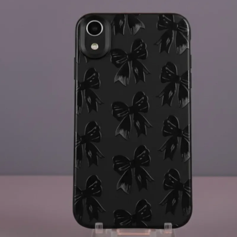 Cover de plástico TPU flexible antichoque en color negro con diseño de lazos negros