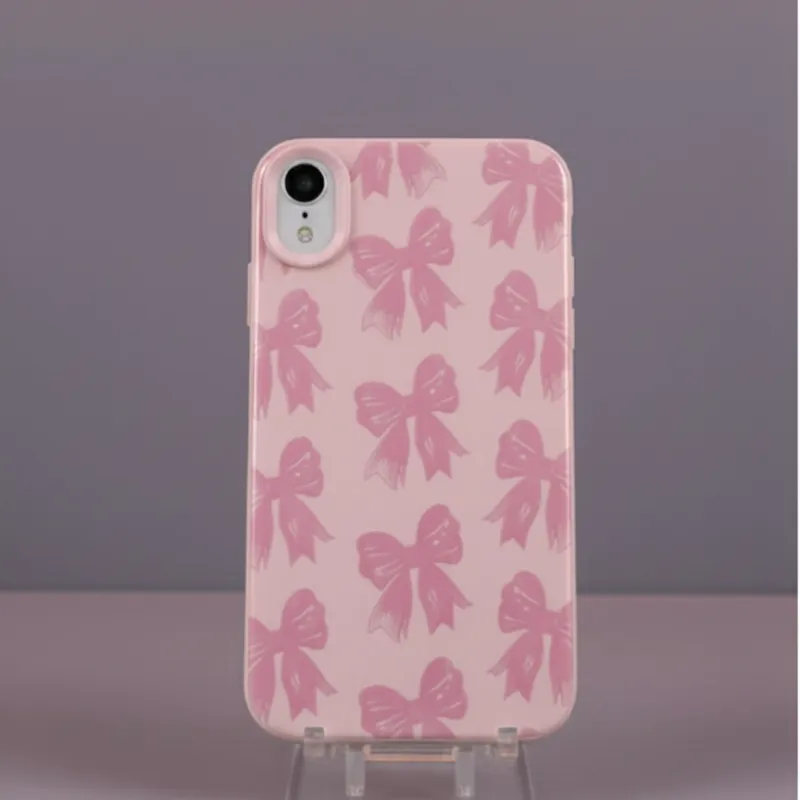 Cover de Plástico TPU flexible antichoque en color rosa con diseño de lazos rosa