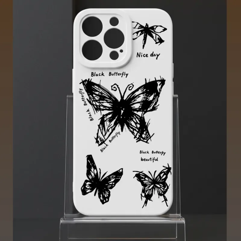 Cover goma en color blanco antichoque con diseño de mariposas y protección alrededor de las cámaras