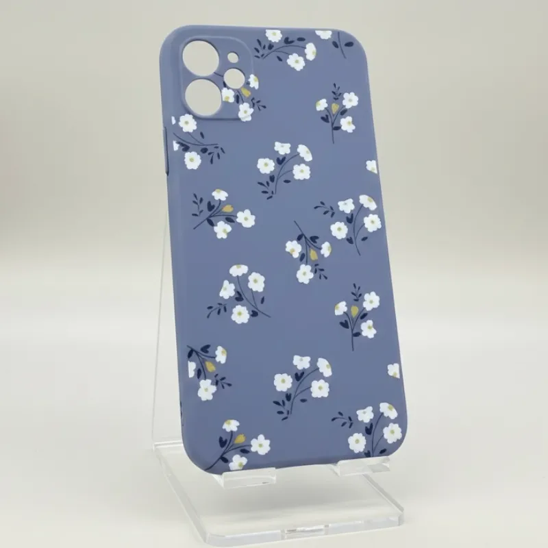 Cover de hola con protección alrededor de las cámaras en color azul con diseño de flores blancas