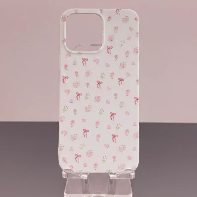 Cover de plástico TPU color blanco con diseño de lazos y flores