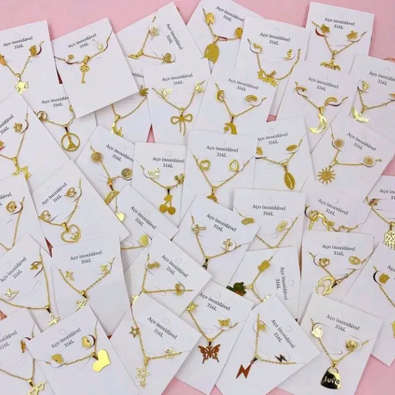 Juego de collar y aretes dorados de acero inoxidable