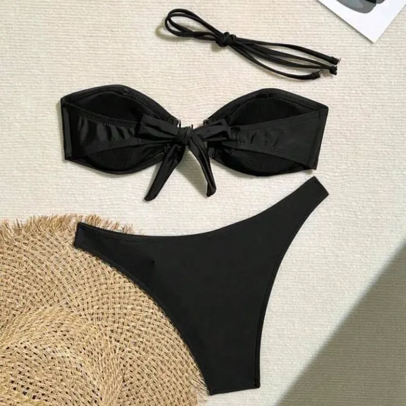 Bikinis negro de tope con lazo