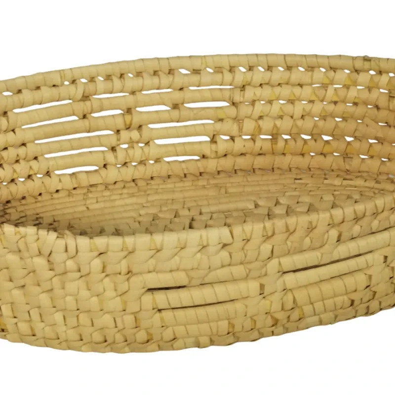 Panera elaborada con Guano Cana y confeccionada con el tejido Santo Domingo, originario de la zona norte y oriental de Pinar del Río, único en su tipo. Aporta un toque natural y artesanal a cualquier espacio donde se coloque, además de ser práctica para almacenar panes, confituras, papeles o pulseras. Ideal para preparar un regalo especial, permitiendo la presentación de productos de manera elegante y auténtica. Perfecta para habitaciones, cocinas, comedores u otros espacios donde se requiera mantener los productos ordenados y al alcance