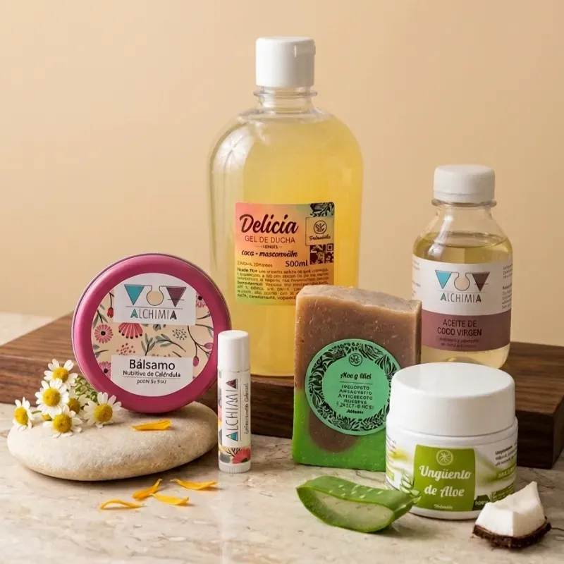 🔹 Gel de Baño (Manzanilla/Coco): Calma y limpia todo el cuerpo en la ducha.
