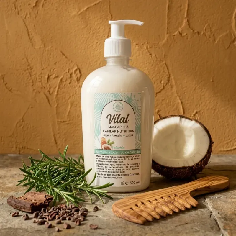 Nuestra Mascarilla Capilar Nutritiva Vital combina coco, cacao y romero para hidratar, fortalecer y estimular el crecimiento capilar. Deja tu cabello suave, brillante y lleno de vida con esta poderosa fórmula natural. 🌿✨