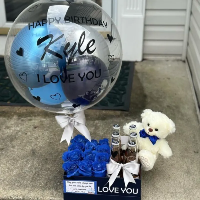 6 cervezas 1 peluche pequeño 12 rosas