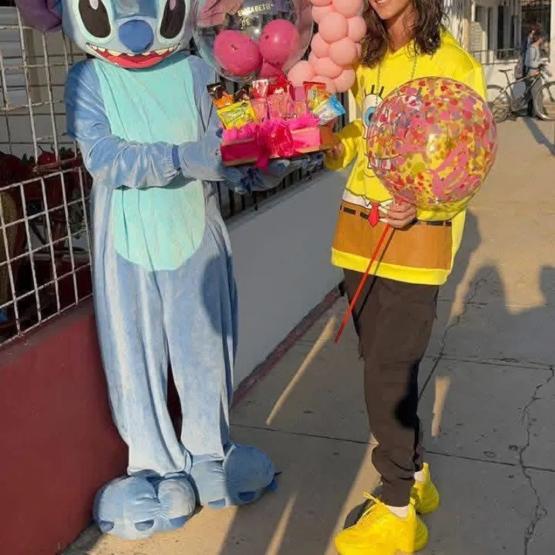Entrega de cesta personalizada de chuches por el travieso stich