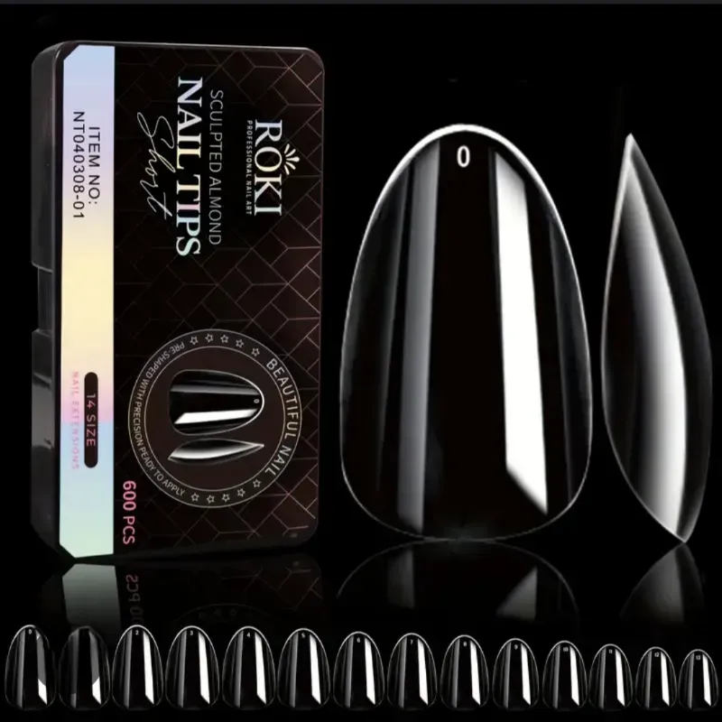 Tips soft gel almendrados cortos caja con 600 piezas 14 tamaños.