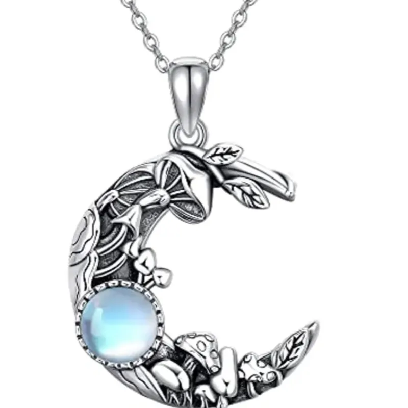 Cadena con Dije de Luna con hongos y cuarzo opalo.