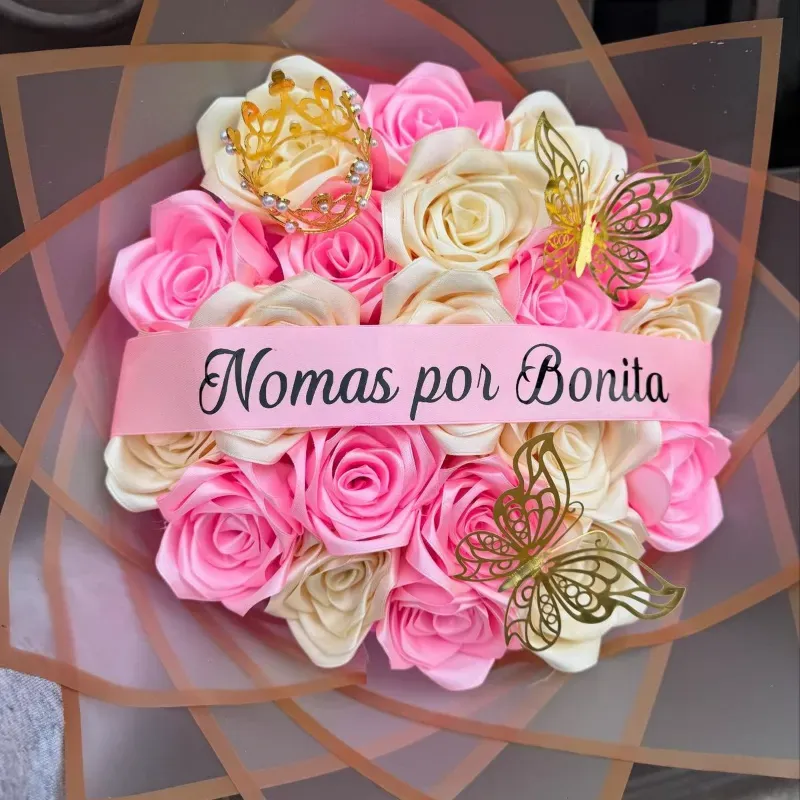 20 rosas de listón Papel coreano Mariposas Corona Perzonalisadas