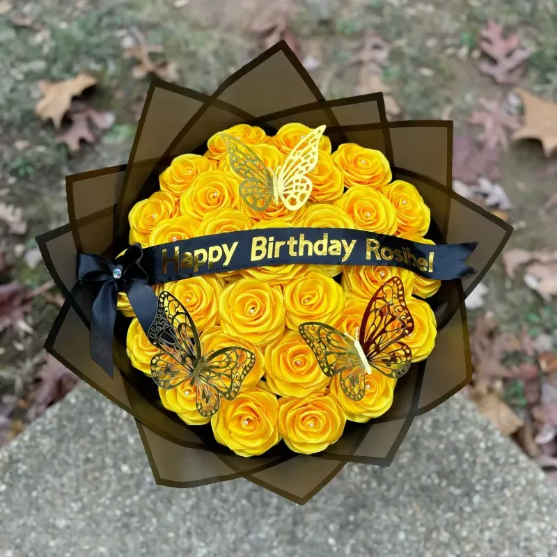 25 Rosas eternas de listón Papel coreano Mariposas Perzonalisadas