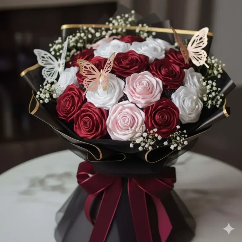 Rosas eternas de listón Papel coreano Mariposas Personalizado