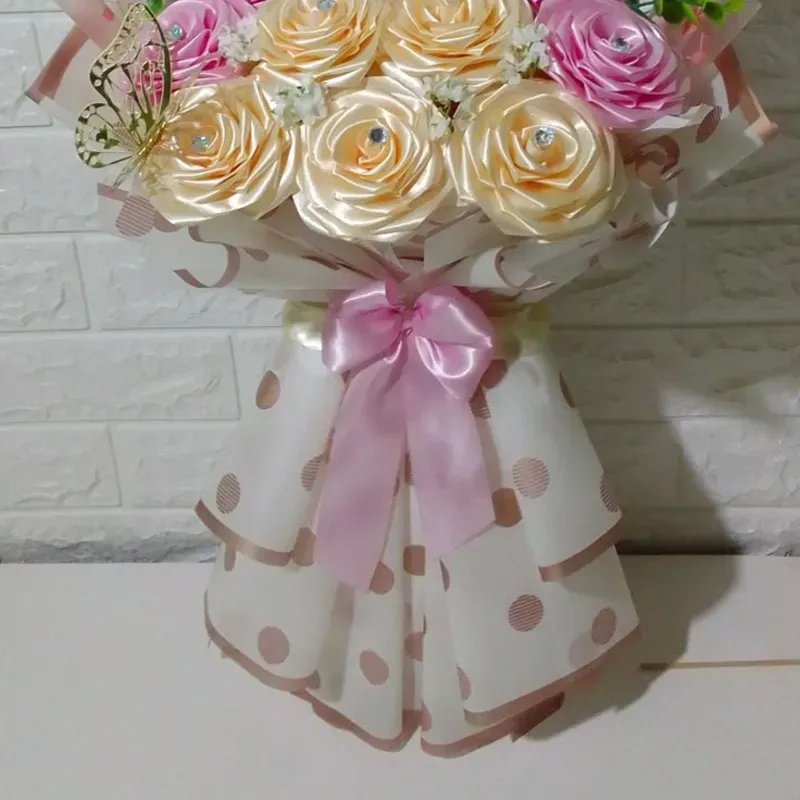 Flores de listón Papel coreano Hojitas Mariposas Perzonalisadas