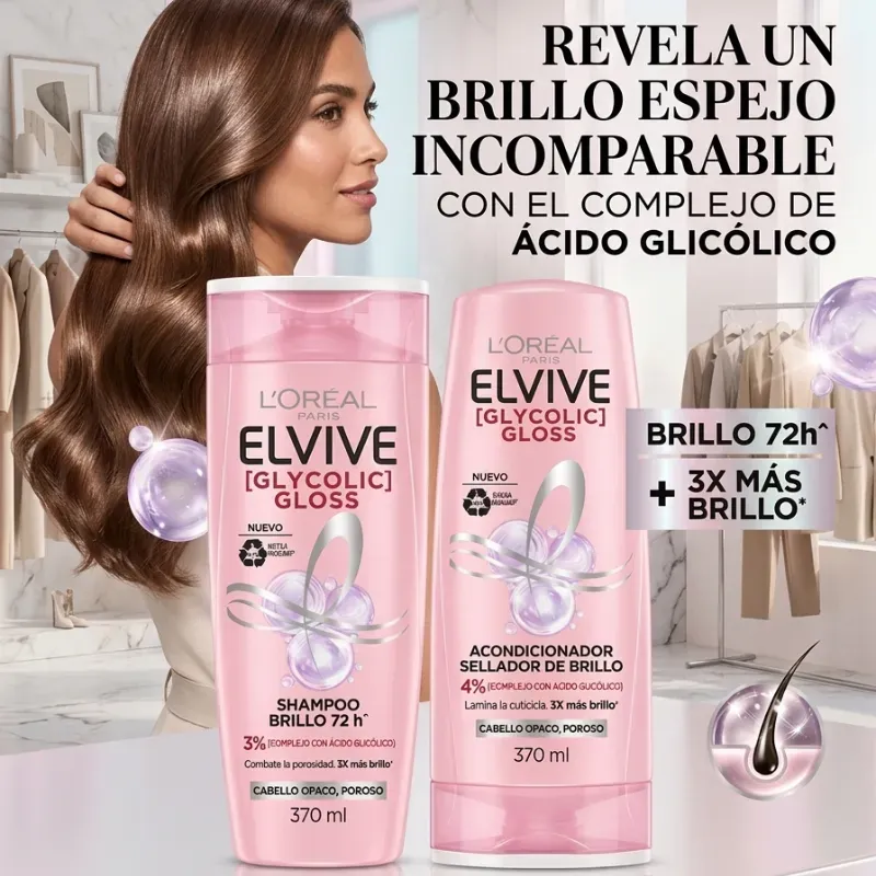 La línea L'Oréal Elvive Glycolic Gloss es perfecta si sientes tu cabello opaco, seco o con textura áspera 💔