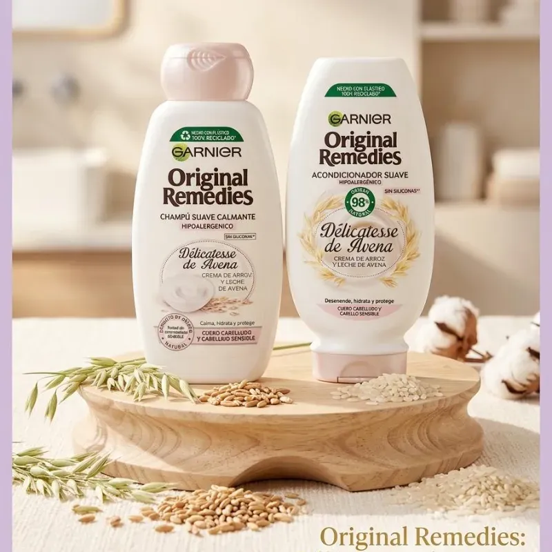 El Pack Garnier Original Remedies Délicatesse de Avena está formulado para brindar una limpieza suave y respetuosa, ideal para cabellos que necesitan calma, protección e hidratación ligera sin agresión 🌿