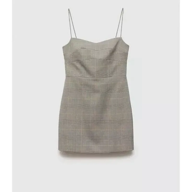 ✨️Vestido Mini Ajustado con Estampado de Cuadros — Diseño de Tirantes Finos y Escote Corazón — Talla S/M Mango