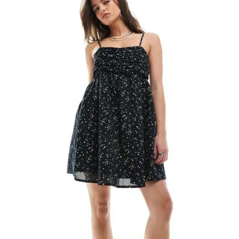 Vestido Mini Stradivarius "Stellar Night" — Corte Imperio con Drapeado y Estampado Galáctico — Talla M