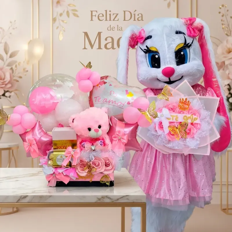 Incluye decoración, peluche, juego de colonia y crema de piel, caja de bombones Ferrero Rocher, confituras y taza personalizada.