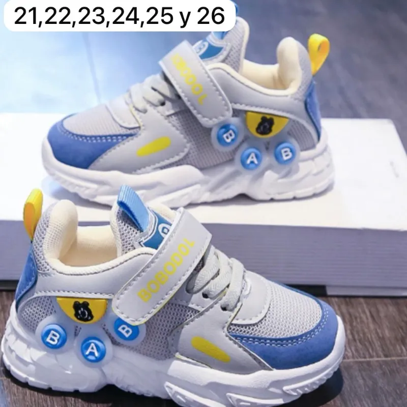 Estos zapatos son tenis deportivos para niños de la marca Bobdog, conocidos por su diseño cómodo, transpirable y ligero.