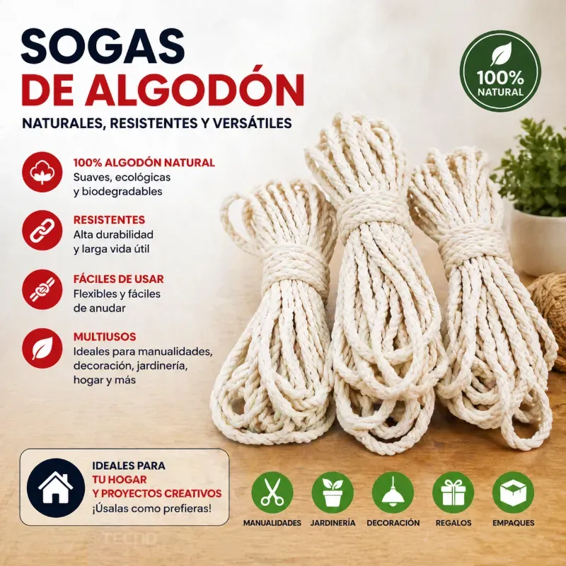 Cuerda de algodón, útil como tendedera, para amarrar, para mechas de fogones de petróleo