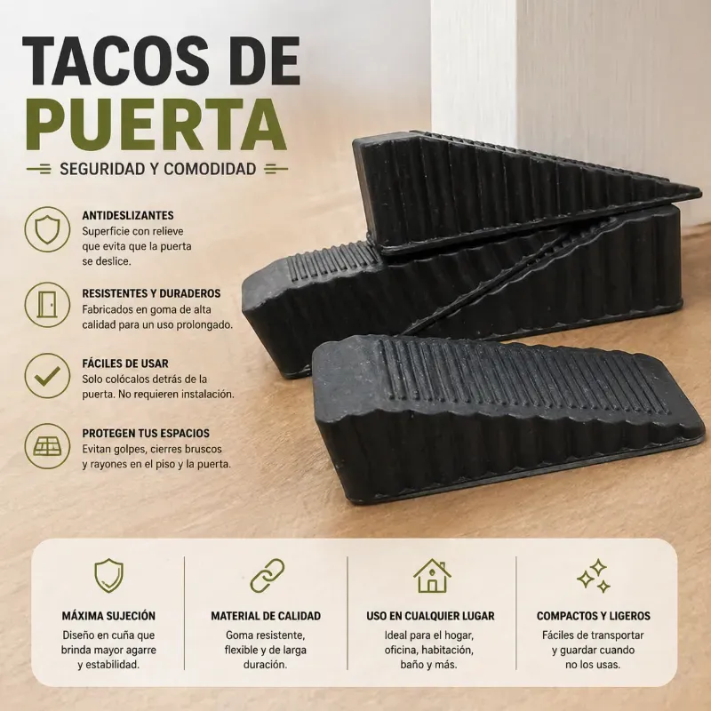 Taco de goma útil para mantener puertas abiertas