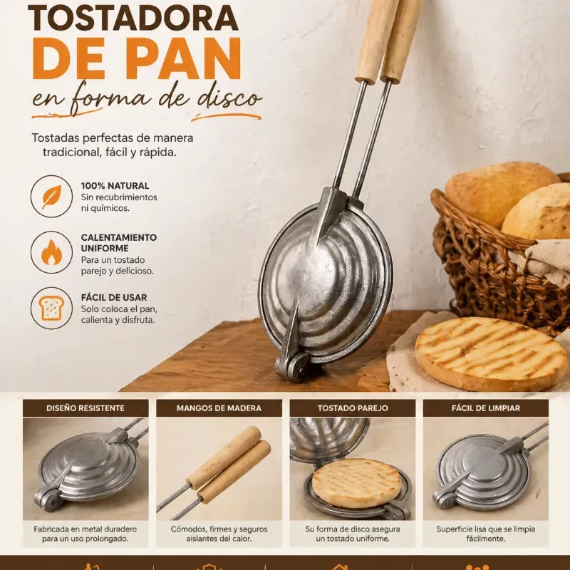 Tostadora de pan de aluminio en forma de disco, ideal para cocina de gas y de carbón