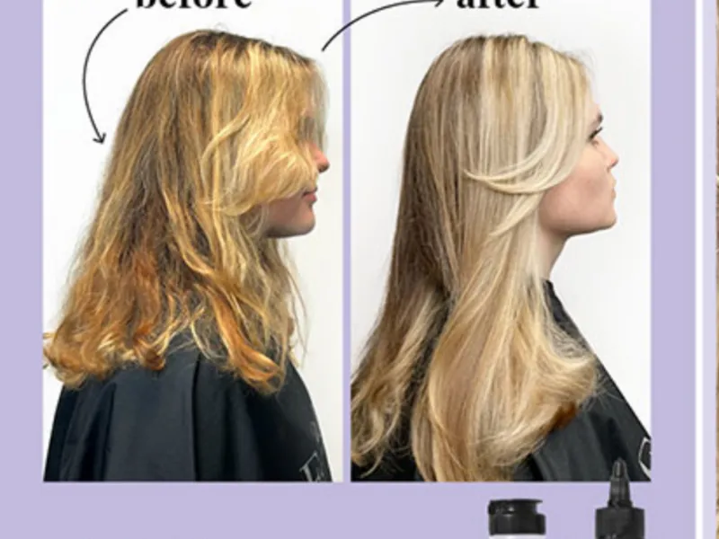 • La fórmula contiene moléculas fijadoras de pigmentos que permiten sellar la interacción magnética de las cargas (positivas y negativas) aumentando su eficacia. Además, la alta concentración de pigmento violeta en combinación con la velocidad de exposición permite que Cool Blonde Fluid actúe también sobre bases cobrizas. ¡Por eso, el efecto neutralizante también es visible en cabellos con base 8, 9 además de 10!