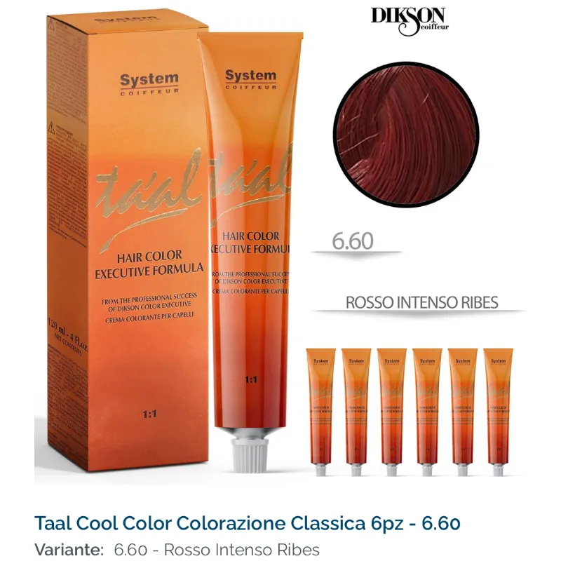 Esta línea de coloración, representa la expresión de las tendencias más Cool de la moda del cabello. Con Taal Color Cool Series el color se convierte en un accesorio de moda, una herramienta que asegura la creatividad gracias a los juegos de efectos cromáticos para la mujer moderna siempre en busca de novedades para looks refinados, personalizados, pero al mismo tiempo de fácil intercambiabilidad. Mezcla Serie 12-13: 1:1,5. Mezcla de coloración clásica: 1:1. Cantidad: Paquete de 6 tubos de 120 ml
