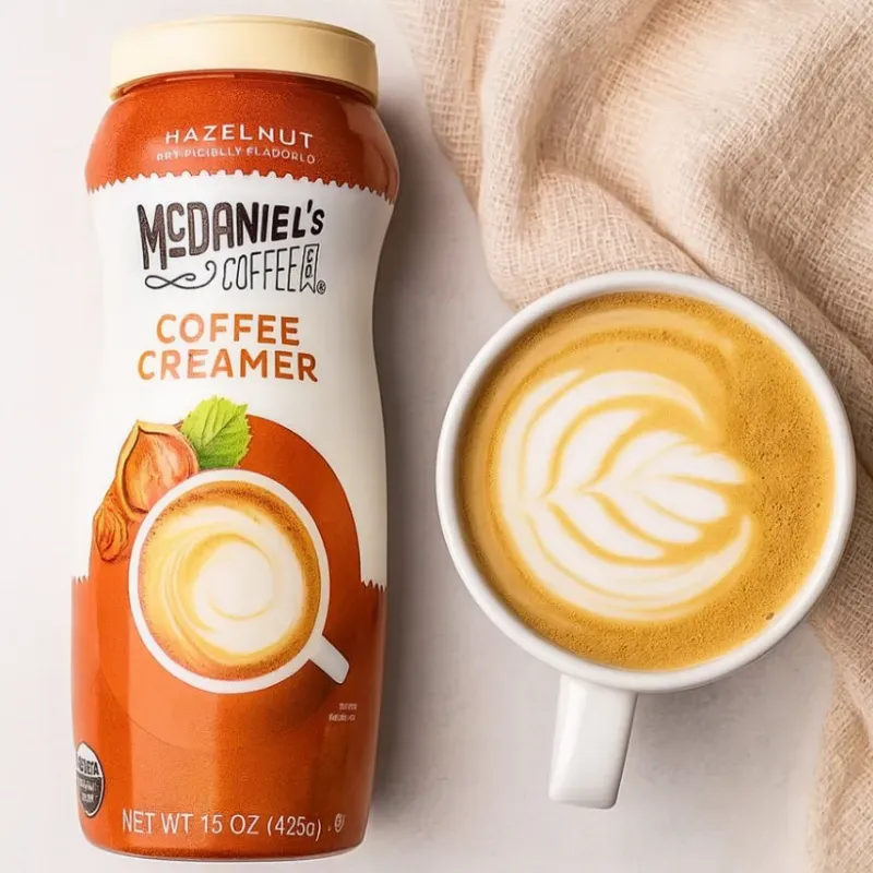 Marca: McDaniel's Coffee Co.Sabor: Avellana artificialPeso neto: 15 onzas (425 g)Características: Es una crema no láctea, libre de colesterol y de gluten.