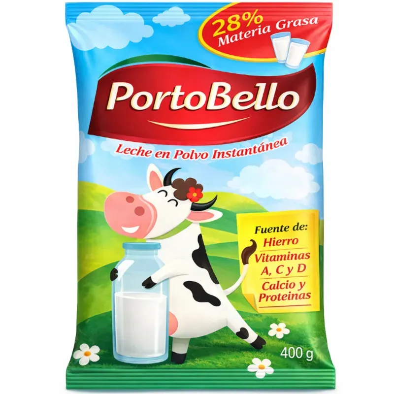 Este producto es leche en polvo instantánea de la marca PortoBello.