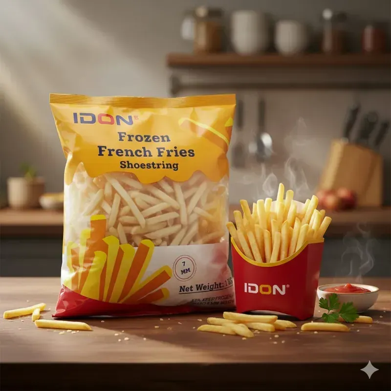 El producto es una bolsa de papas fritas congeladas de la marca IDON.