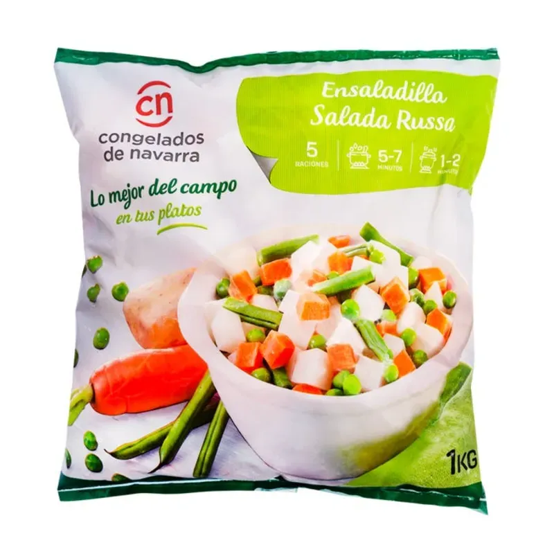 El producto es una bolsa de 1 kg de verduras congeladas para ensaladilla rusa de la marca Congelados de Navarra.