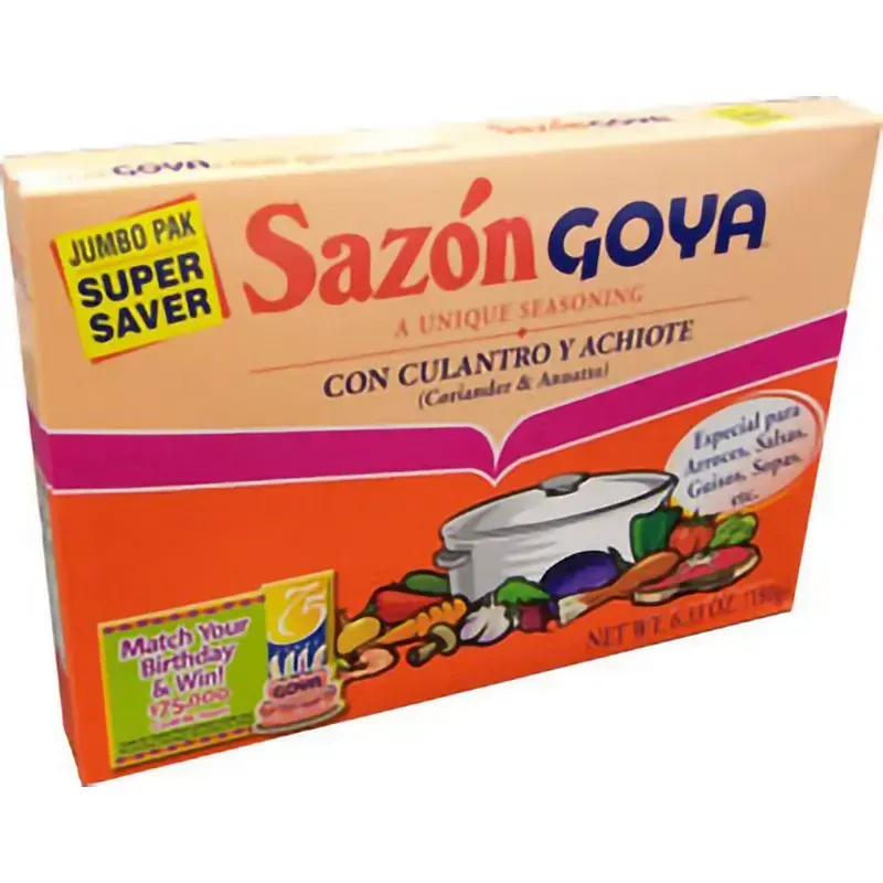 Este producto es el Jumbo Pak de Saz贸n Goya con Culantro y Achiote, el cual contiene 36 sobres (unidades) individuales. Es una mezcla de especias dise帽ada para a帽adir sabor y un color vibrante a platos como arroces, guisos, legumbres y carnes.