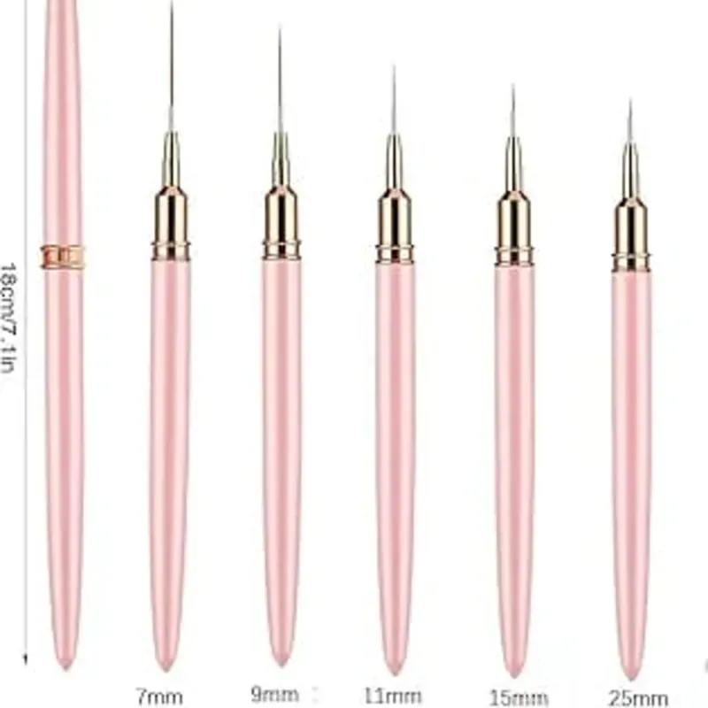 El juego de pinceles para uñas incluye 5 tamaños diferentes (7 mm, 9 mm, 11 mm, 15 mm y 25 mm). Perfecto para dibujar diferentes patrones en las puntas de las uñas. También puedes usarlos para esparcir polvo y escamas en tus uñas.