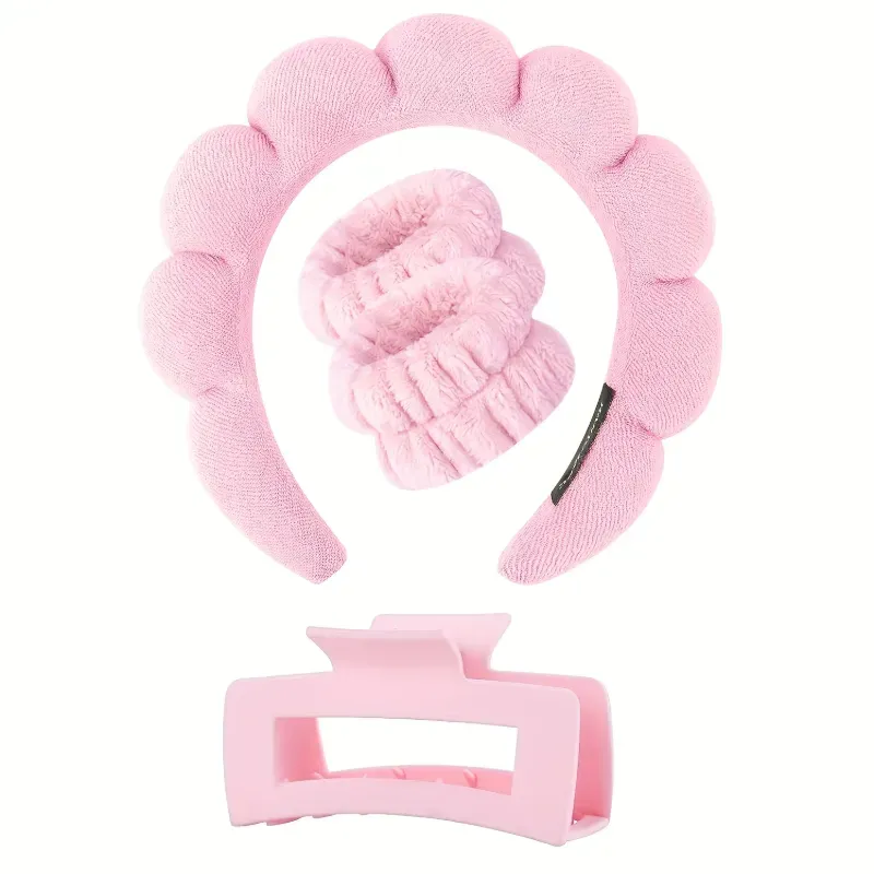 🛍Set de diadema , muñequeras y pellizco para rutina de cuidado facial o maquillaje.🧖♀️
